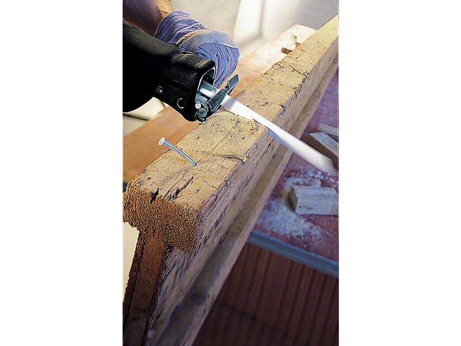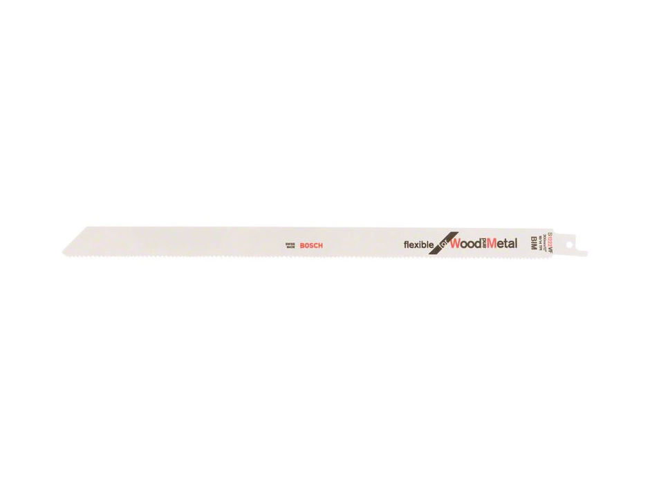 Säbelsägeblatt S 1222 VF Flexible for Wood and Metal. Werkstoff: BIM. Zahnausführung: varioverzahnt. Einsatzbereiche: Für Holz mit Nägeln/Metall (kleiner als 250 mm Stärke), für Metallbleche, Aluminiumprofile (von 3 bis 10 mm Stärke), für GFK/Epoxy (kleiner als 250 mm Stärke). Flexibler Bündigschnitt. Inhalt der Verkaufsverpackung: 2 Stück.