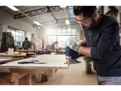 Das T 101 B Clean for Wood Stichsägeblatt macht saubere gerade Schnitte in Holz. Die präzisionsgeschliffenen Zähne mit Kegelschliffkörper ermöglichen makellose Ergebnisse. Das Blatt aus Kohlenstoffstahl ist zum Schneiden von Weichholz und nicht-abrasiven Holzwerkstoffen geeignet. Es ist mit einer fein progressiven Zahnteilung (2,7 mm) ausgestattet, um Holzwerkstoffe mit einer Dicke von 3-30 mm zu schneiden. Für den Gebrauch mit Stichsägen mit T-Schaft-Aufnahme. Werkstoff: HCS, Zahnausführung: freiwinkel-, zähnegeschliffen, Gesamtlänge [mm]: 100, Zahnteilung [mm]: 2,7, Einsatzbereiche: Weichholz, Span-, Tischler-, Faserplatten (3-30 mm), Kunststoffe/Epoxy (ø 30 mm), Typ: T 101 B.