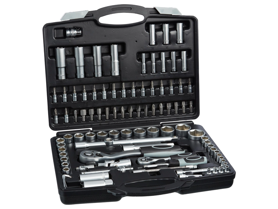 Die Butler macht´s! Steckschlüssel-Garnitur 94-tlg. beinhaltet hochwertige Chrom-Vanadium-Stahl Werkzeuge zum lösen und festziehen.