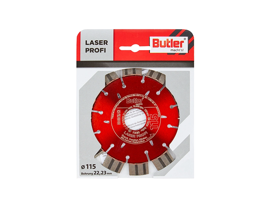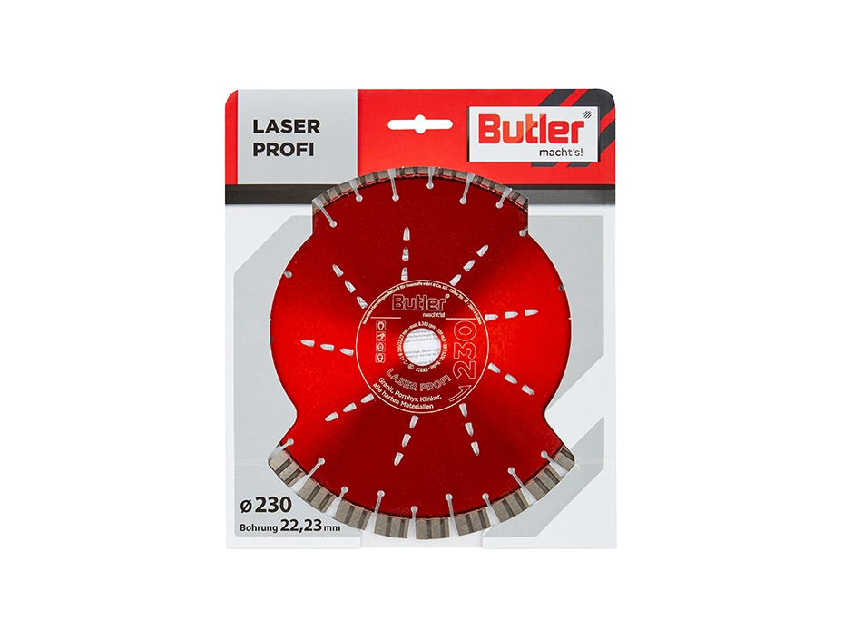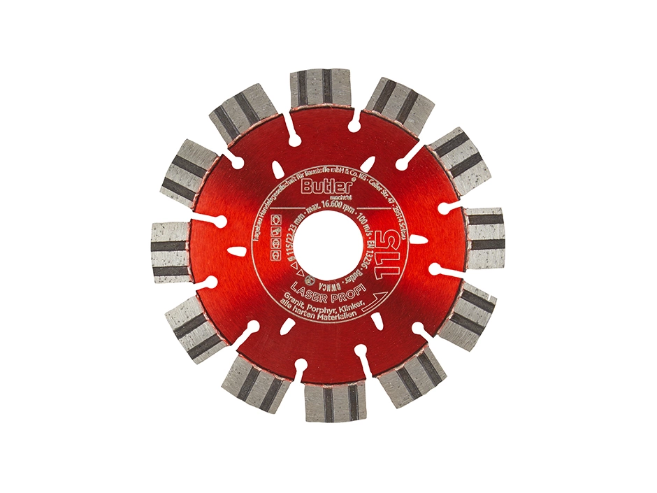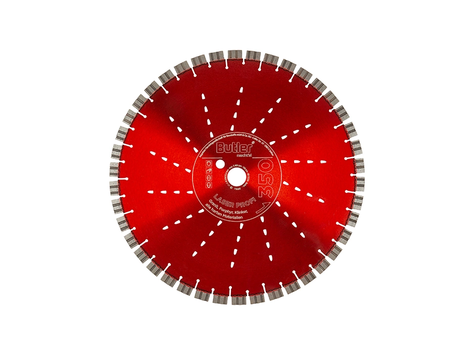 Die segmentierte Butler macht´s! Trennscheibe Bau hat einen Durchmesser von 350 mm und eine Bohrung von 25,4 mm. Das Einsatzgebiet reicht von weichen bis hin zu harten Materialien.
