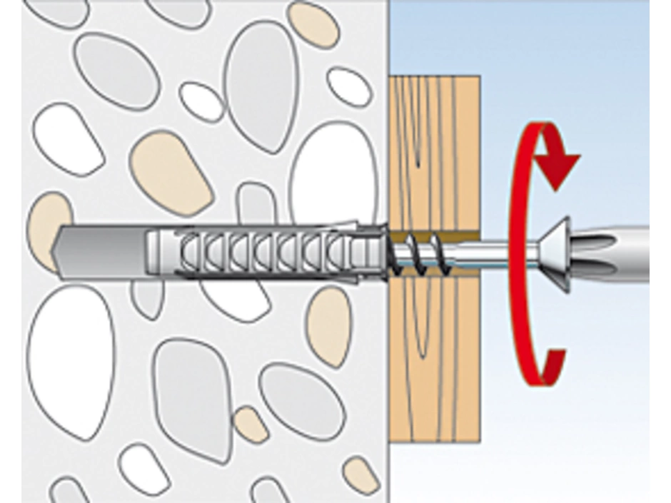 Der fischer Spreizdübel SX leitet durch die Vierfach-Spreizung die Kraft optimal in den Baustoff ein. Neben der typischen Spreizung garantiert das für die Herstellung verwendete hochwertige Nylon die sichere und dauerhafte Befestigung. Der am Dübelkopf angeformte Rand verhindert, dass der Dübel ins Bohrloch rutscht. Die mitgelieferten Schrauben sind optimal auf den fischer Spreizdübel SX abgestimmt. Dies garantiert perfekten Halt beispielsweise von Leuchten, Leisten, Bad- und WC-Einrichtungen sowie leichten Wandschränken.