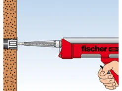 Die fischer Gerüstöse FI G kann mit verschiedenen, bauaufsichtlich zugelassenen Innengenwindeankern von fischer gesetzt werden. In Beton ist eine Kombination mit den Injektionsmörteln FIS V und FIS SB sowie der Innengewindehülse RG 18 x 125 M 12 I und dem Zykon-Hinterschnittanker FZA 22 x 100 M 12 I zu empfehlen. In Mauerwerk wird die Gerüstöse sicher mit dem fischer Hochleistungsmörtel FIS V, der Ankerhülse FIS H 20 x 85 K und der Innengewindehülse FIS E 15 x 85 M 12 befestigt. Das System ist ideal, um Fassadengerüste, Spannseile und Rankgerüste zu befestigen.