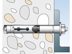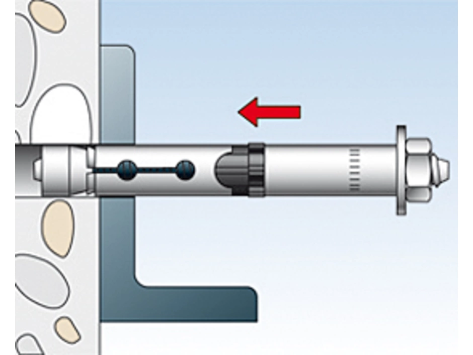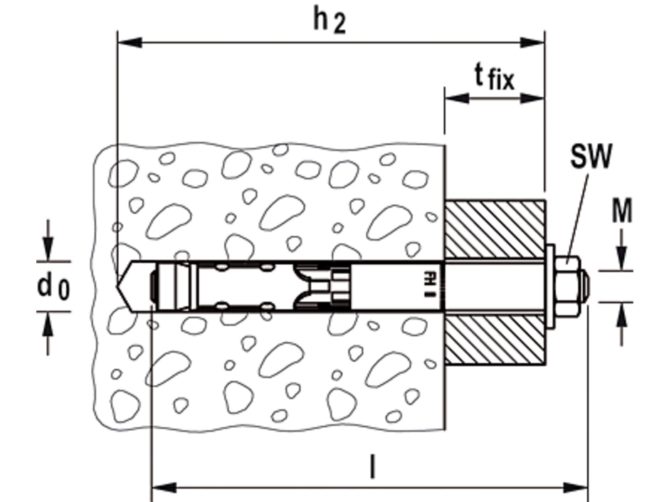 Der fischer Hochleistungsanker FH II B mit Gewindebolzen ist ein Hülsenanker aus galvanisch verzinktem Stahl. Der Anker wird in der zeitsparenden Durchsteckmontage gesetzt. Beim Anziehen des Ankers wird der Konus in die Spreizhülse gezogen und verspannt diese gegen die Bohrlochwand. Der schwarze Kunststoffring verhindert, dass sich der Anker mitdreht, und nimmt den Anzugsschlupf auf. Das Anbauteil wird dadurch an den Verankerungsgrund gezogen. Der fischer Hochleistungsanker FH II B mit Gewindebolzen bestens geeignet, um in gerissenem und ungerissenem Beton Gitter, Stahlkonstruktionen und Kabeltrassen zu befestigen.