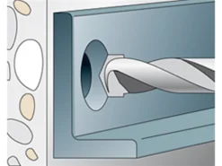 Der fischer Hochleistungsanker FH II SK mit Senkkopf ist ein Hülsenanker aus nicht rostendem Stahl. Der Anker wird in der zeitsparenden Durchsteckmontage gesetzt. Beim Anziehen des Ankers wird der Konus in die Spreizhülse gezogen und verspannt diese gegen die Bohrlochwand. Der schwarze Kunststoffring verhindert, dass sich der Anker mitdreht, und nimmt den Anzugsschlupf auf. Das Anbauteil wird dadurch an den Verankerungsgrund gezogen. Der fischer Hochleistungsanker FH II SK mit Senkkopf ist bestens geeignet, um in gerissenem und ungerissenem Beton Geländer, Treppen und Leitern im Außenbereich zu befestigen.