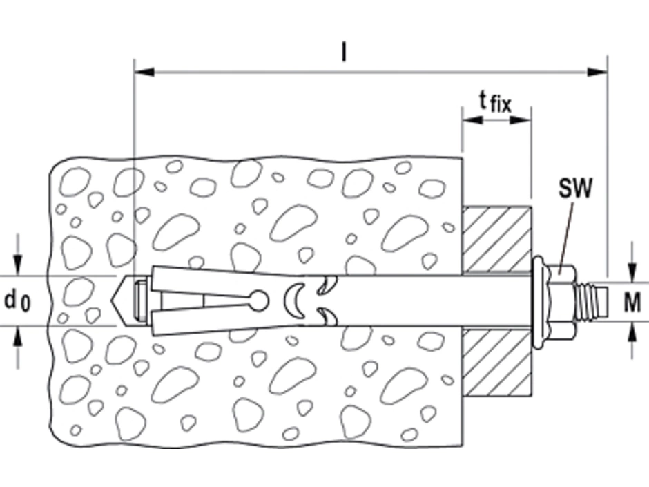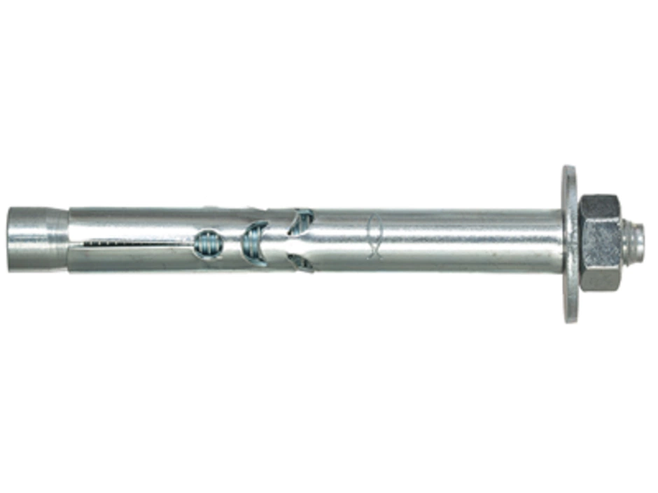 Der fischer Hülsenanker FSA-B ist ein Anker aus galvanisch verzinktem Stahl mit Mutter und Unterlegscheibe für konstruktive Befestigungen aus galvanisch verzinktem Stahl. Der FSA-B wird in der zeitsparenden Durchsteckmontage gesetzt. Beim Anziehen wird der Konus in die Spreizhülse gezogen und verspannt diese gegen die Bohrlochwand. Die Ausstanzungen nehmen den Anzugsschlupf wie eine Knautschzone auf. So wird das Anbauteil an den Verankerungsgrund herangezogen. Der fischer Hülsenanker FSA-B ist ideal für die Befestigung von nicht sicherheitsrelevanten Befestigungen wie Leitern, Toren und temporären Befestigungen in ungerissenem Beton.