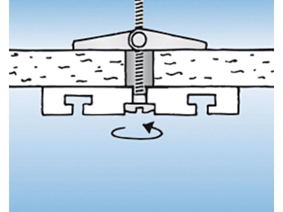 Mit dem fischer Kippdübel KD können leichte Anbauteile wie leichte Regale und leichte Hängeschränke in Gipskarton- und Gipsfaserplatten, Spanplatten und Hohldecken aus Ziegelstein und Beton befestigt werden. Der Kippdübel wird in der Vorsteckmontage in das Bohrloch eingeführt und klappt hinter der Platte selbstständig auf. Dies erfordert kein spezielles Montagewerkzeug und erlaubt eine komfortable und schnelle Montage.