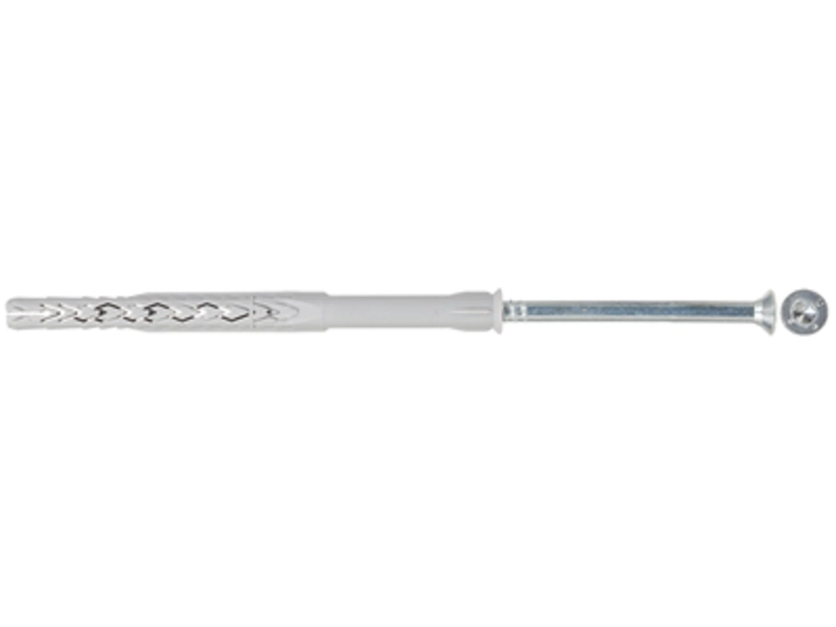 Der fischer Langschaftdübel SXRL-T ist mit der fischer Senkkopfschraube mit T40-Antrieb für Mehrfachbefestigungen von nicht tragenden Systemen in Mauerwerk, Beton und Porenbeton zugelassen. In Lochsteinmauerwerk leiten die zwei Spreizzonen des Dübels gleichmäßig Kraft ein, in Porenbeton und Vollbaustoff vereinen sich diese zu einem langen Spreizelement. Mit der Sicherheitsschraube aus galvanisch verzinktem Stahl ist der Langschaftdübel für Befestigungen im Innenbereich wie Fenstern, Garderoben, Hängeschränken oder TV-Konsolen geeignet.