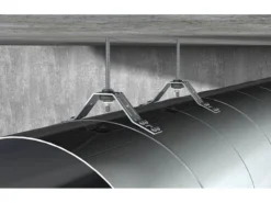 Der fischer Deckenabhänger LRBN ist ein Befestigungsbauteil mit Schalldämmelement in genieteter und gesteckter Ausführung zum Abhängen von Wickelfalzrohren mit Gewindestangen. Das Schalldämmelement vermindert die Übertragung der Vibrations- und Strömungsgeräusche. Die Mehrfachlochung der Deckenabhänger ermöglicht eine einfache Befestigung mit Bohrschrauben oder Nieten. Das Durchgangsloch in den Deckenabhängern erlaubt die einfache Ausrichtung und Höhenregulierung der Befestigung. Die genietete Ausführung verleiht den Deckenabhängern eine erhöhte Stabilität. Die Sollbiegestelle ermöglicht eine ideale Anpassung an den Rohraußendurchmesser.