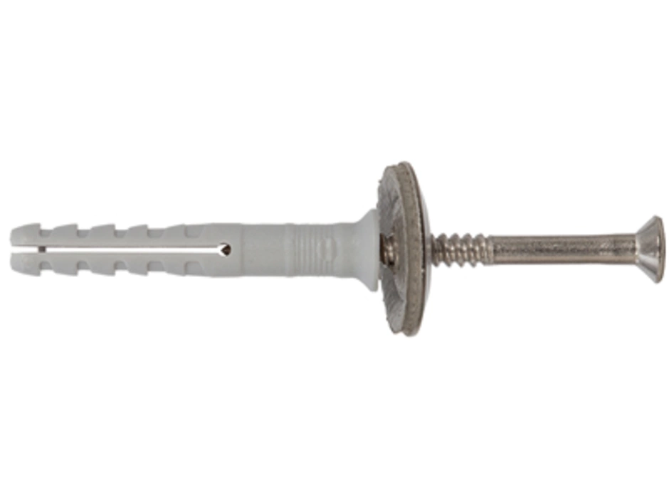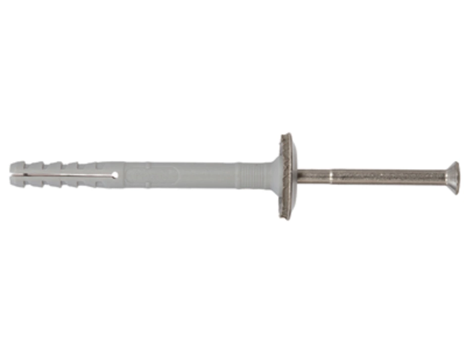Der fischer Nageldübel N-SD mit Senkkopf besteht aus einem hochwertigen Nylondübel und einer nicht rostenden Nagelschraube mit Dichtscheibe. Diese sind für eine schnelle Montage bereits vormontiert. Der Nageldübel wird in der zeitsparenden Durchsteckmontage durch das Anbauteil eingeführt. Beim Einschlagen der Nagelschraube spreizt die Dübelhülse auf und verankert sicher im Baustoff. Der fischer Nageldübel N-SD mit Senkkopf und Dichtscheibe ist ideal für die Befestigung von Putz- und Wandanschlüssen, Blechen und Folien in allen Baustoffen im Außenbereich.