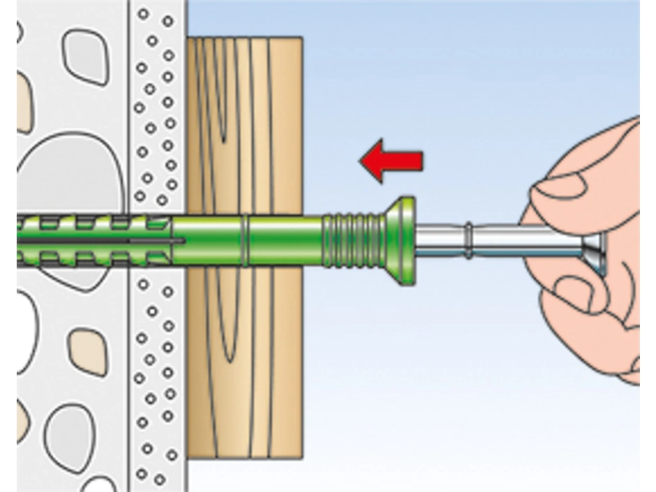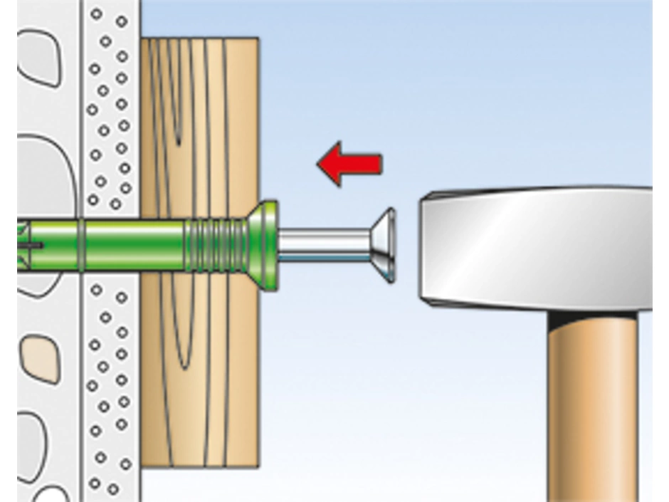 Der fischer Nageldübel N Green mit Senkkopf besteht aus einer Dübelhülse aus Kunststoff und einer galvanisch verzinkten Nagelschraube. Diese sind für eine schnelle Montage bereits vormontiert. Das Granulat zur Herstellung des fischer Nageldübels N Green wird mindestens zur Hälfte aus nachwachsenden Rohstoffen gewonnen. Diese stehen nicht in Konkurrenz zu Anbauflächen für Nahrungs- und Futtermittel. Der Nageldübel N Green verfügt über die gleichen Leistungsmerkmale und Tragfähigkeit wie das Original. Der Nageldübel wird in der zeitsparenden Durchsteckmontage durch das Anbauteil eingeführt. Beim Einschlagen der Nagelschraube spreizt die Dübelhülse auf und verankert sicher im Baustoff. Der fischer Nageldübel N Green mit Senkkopf ist ideal für die Befestigung von Holzkonstruktionen in allen Baustoffen im Innenbereich.