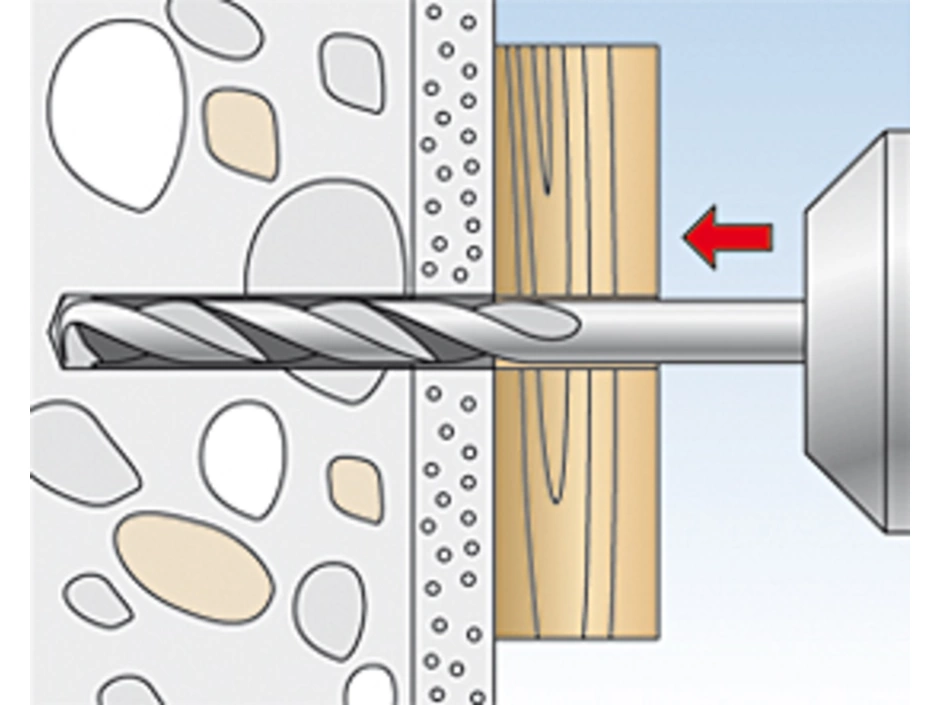 Der fischer Nageldübel N-S mit Senkkopf besteht aus einem hochwertigen Nylondübel und einer galvanisch verzinkten Nagelschraube. Diese sind für eine schnelle Montage bereits vormontiert. Der Nageldübel wird in der zeitsparenden Durchsteckmontage durch das Anbauteil eingeführt. Beim Einschlagen der Nagelschraube spreizt die Dübelhülse auf und verankert sicher im Baustoff. Der fischer Nageldübel N-S mit Senkkopf ist ideal für die Befestigung von Holzkonstruktionen in allen Baustoffen im Innenbereich.
