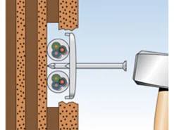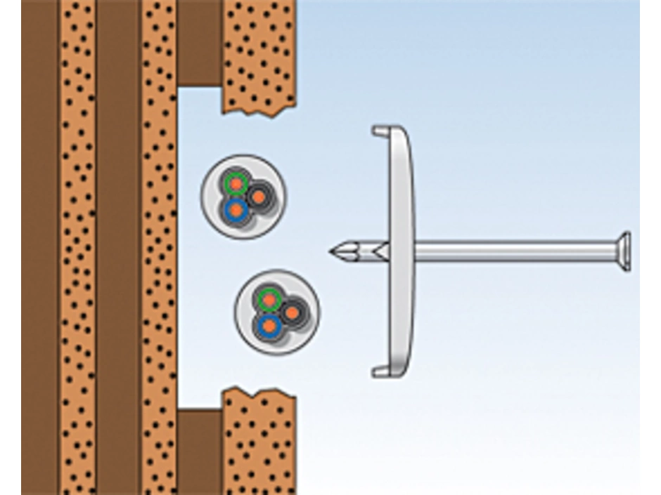 Die fischer Nagelscheibe NSB ist eine Lösung zur Befestigung von Kabeln in Mauerschlitzen und an Holzkonstruktionen. Die Nagelscheibe aus hochwertigem Polypropylen und einem gehĂ€rteten, verzinkten Stahlnagel sind bereits vormontiert. Die Nagelscheibe wird positioniert und der Nagel mit dem Hammer eingeschlagen â fertig. Die fischer Nagelscheibe NSB ist geeignet, um Kabel verschiedener Durchmesser in Mauerschlitzen und in Holz zu befestigen.