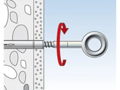 Die fischer Ösenschraube GS 10 ist aus galvanisch verzinktem Stahl hergestellt. Die maximale Tragfähigkeit erreicht die Universal-Ösenschraube mit den empfohlenen fischer Spezialdübeln. Der fischer Dübel S 12 R ist zusammen mit der Ösenschraube für die Verankerung in Vollbaustoffen wie Beton, Kalksand-Vollstein oder Vollziegel geeignet. Der fischer Dübel S 14 H R ist in Kombination mit der Ösenschraube für alle Lochbaustoffe zu empfehlen. Die fischer Ösenschraube GS ist ideal, um Seile, Ketten oder Wäscheleinen zu befestigen.