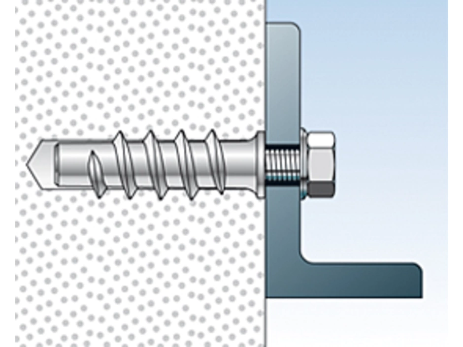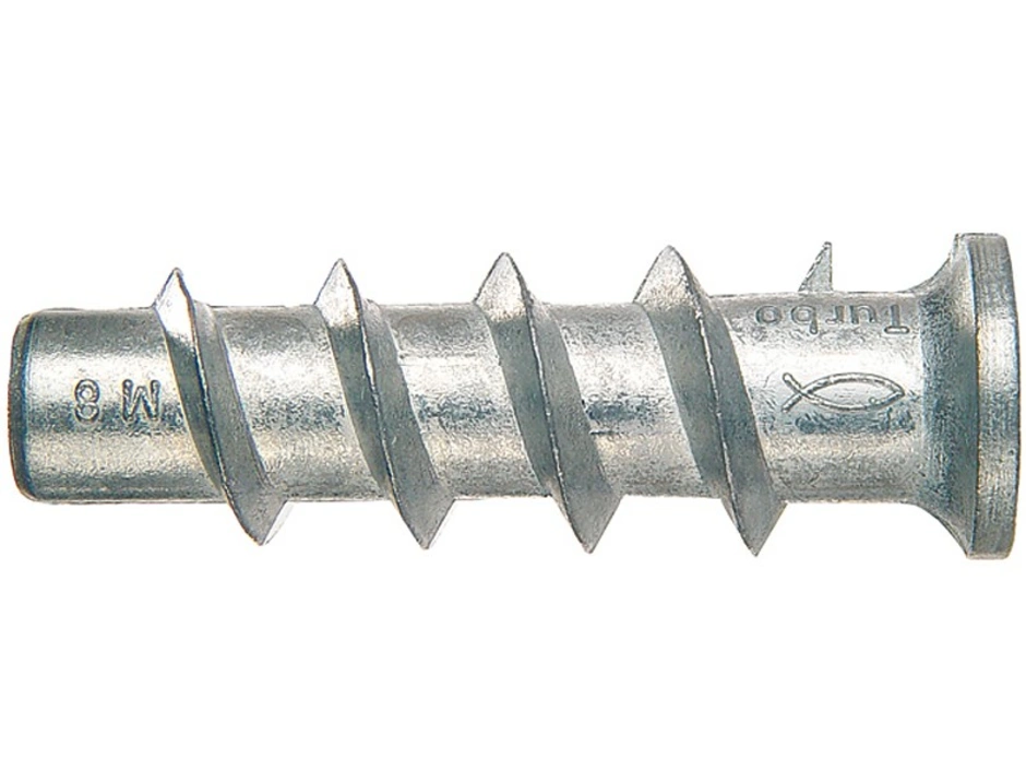 Der fischer Turbo Porenbetonanker FTP M ist ein Spezialdübel für die Befestigung in Porenbeton. Der aus Metall hergestellte Dübel wird in der Vorsteckmontage mit einem Innensechskantschlüssel in das Bohrloch gesetzt. Das spiralförmige Außengewinde schneidet sich dabei formschlüssig in den Baustoff. Der fischer Turbo Porenbetonanker FTP M ist bestens geeignet, um Spiegelschränke, Heizkörper und TV-Konsolen sicher in Porenbeton zu befestigen.