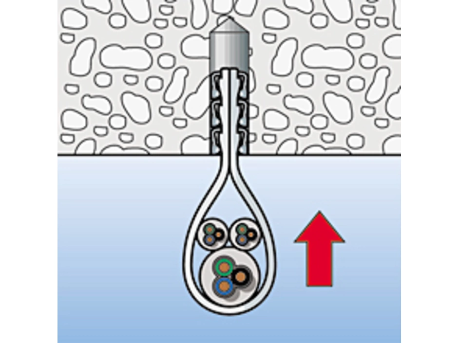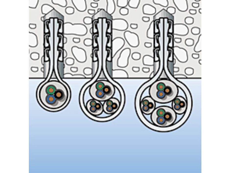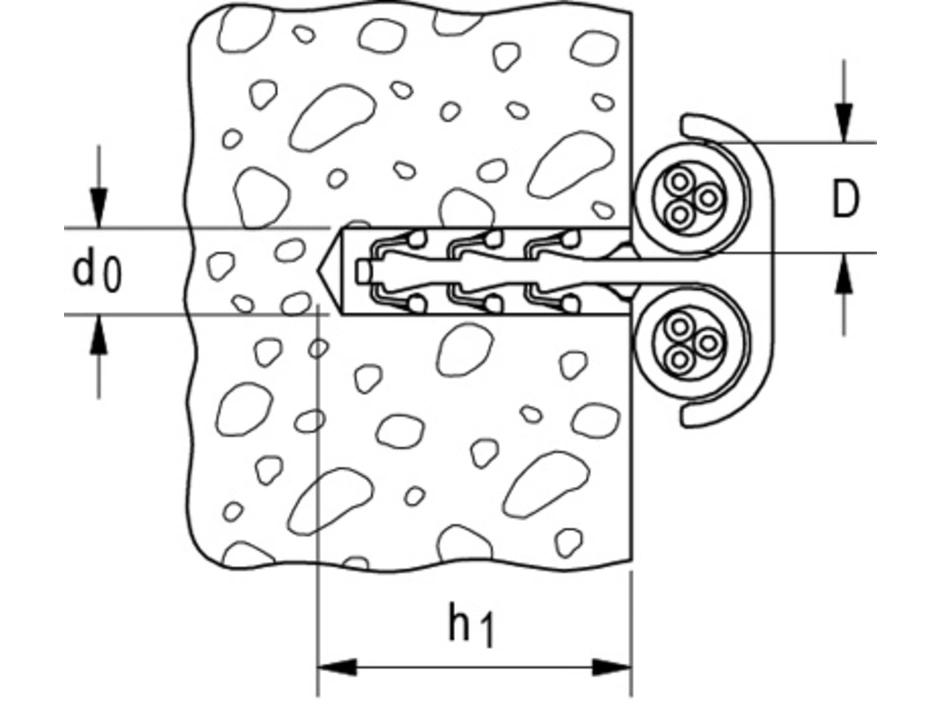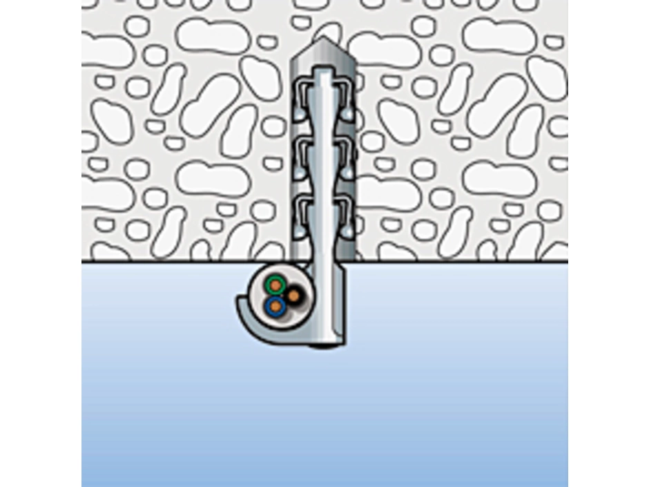 Die fischer Steckfix plus Einzelschelle SF plus ES ist eine montagefreundliche Lösung zur Befestigung von Leitungen und Rohren. Die aus hochwertigem Nylon hergestellte Einzelschelle vereint Dübel, Schraube und Schelle in einem Bauteil. Die innovative Elektrobefestigung wird ohne Schraube in das Bohrloch gesteckt und fixiert die Rohre und Leitungen direkt in Beton und Vollstein. Die Steckfix plus Einzelschelle hält auch bei extremen Temperaturbelastungen von -20 °C bis +80 °C.