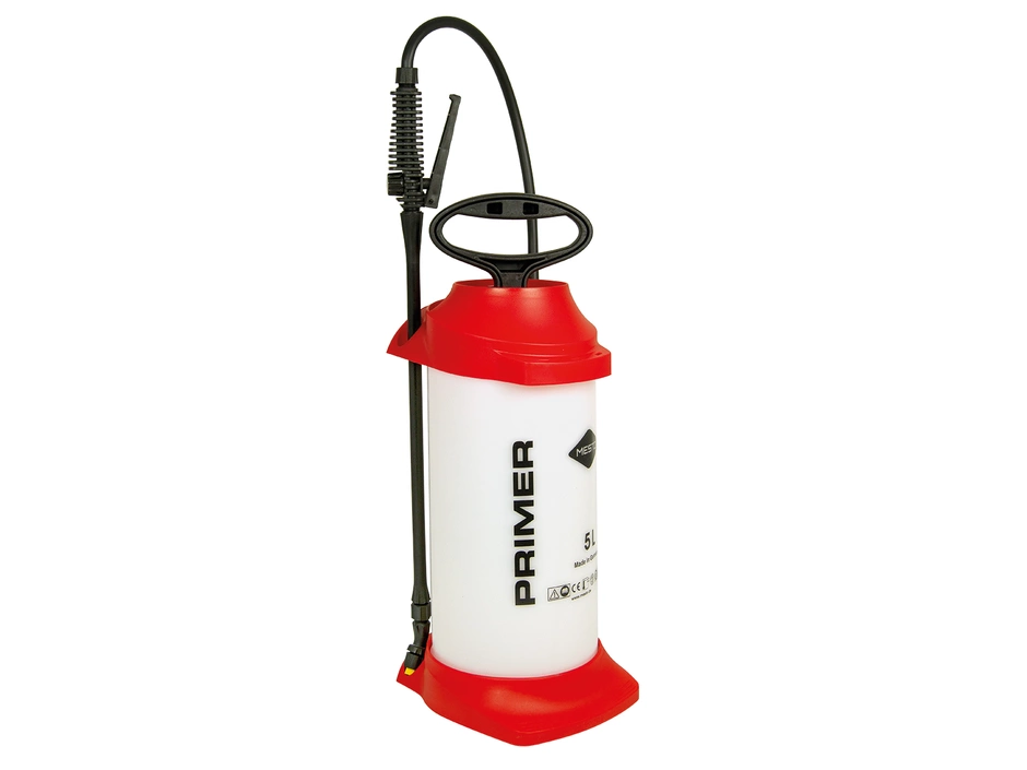 Geeignet zum Versprühen von Tiefgrund, Haftgrund und anderen sprühfähigen Bauchemikalien. Der Behälter aus Kunststoff mit 5 l Füllinhalt ist seitentragbar und verfügt über ein großes Druckpolster, was weniger Nachpumpen bedeutet. Der Primer ist mit einer Profipumpe mit ergonomischem Pumpengriff, einem 40 cm langen und 360° drehbaren Kunststoff-Spritzrohr mit Spezial-Flachstrahldüse aus Kunststoff und einem 1,3 m lange PVC-Schlauch ausgestattet. FPM-Dichtungen bieten eine gute Beständigkeit gegenüber vielen Bauchemikalien. Spritz- und Verlängerungsrohre können optimal am Gerät verstaut werden. Der einfach zu reinigende integrierte Schmutzfilter rundet die Ausstattung des Primers ab.