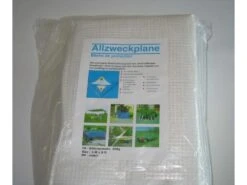 Abdeckplane mit rundum aufgebrachten Verstärkungsstreifen, Messingösen, einzeln im Polybeutel verpackt