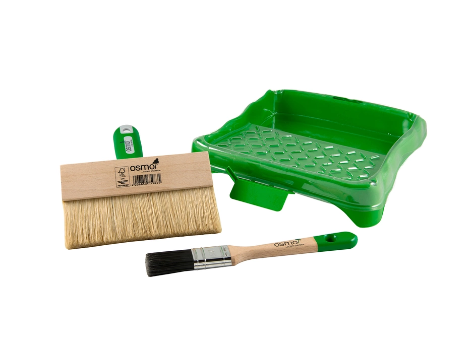 – Inhalt: Farbwanne inkl. Abstreifrillen, Wanneneinleger (3 Stück), Terrassenstreichbürste mit Handgriff (150 mm breit) und Flächenstreicher (25 mm)