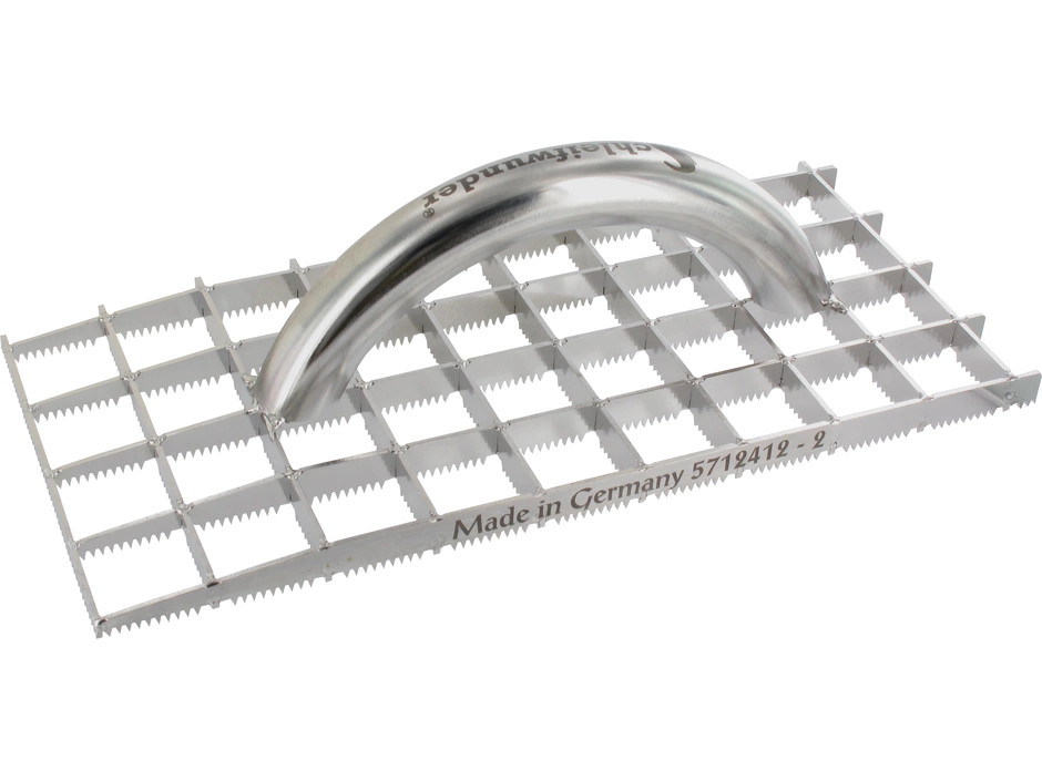 Schleifwunder, gezahnt, Edelstahl, mit patentierten SchleifzĂ€hnen, 10 Reihen, ca. 800 g, vor dem Griff nach vorne abgeschrĂ€gt, geeignet fĂŒr: Lamelle, Styropor, Styrodur, Holzweichfaser, Weichfaserplatten, Zugang zu Kellerschachtrosten, Untersichten und UK