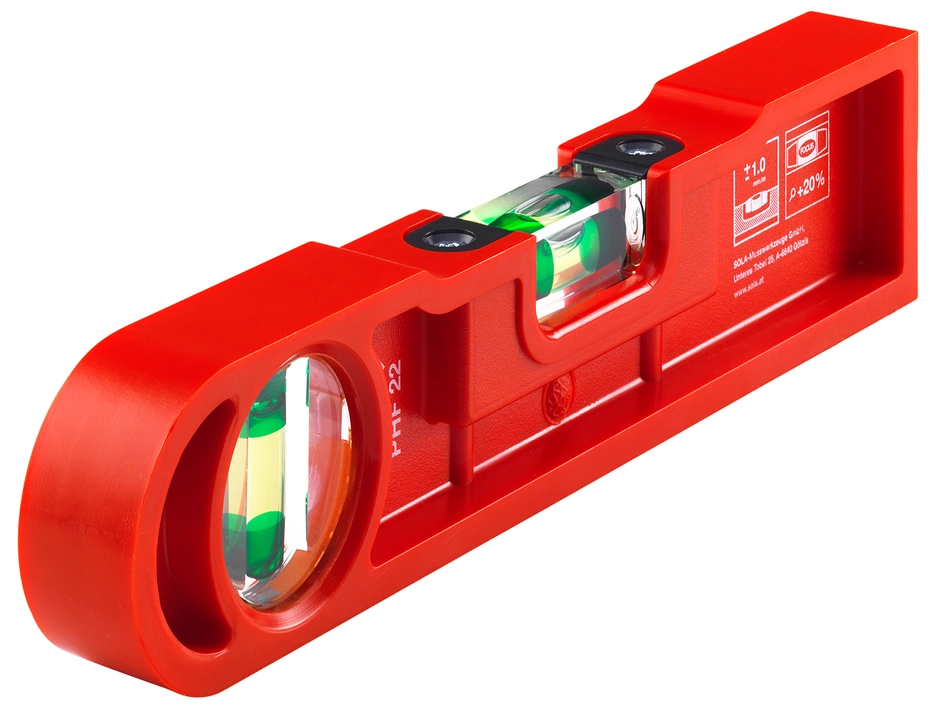 Besser, schneller und genauer Ablesen durch patentierte SOLA-Focus-Libellen. Bessere Ablesbarkeit bei DĂ€mmerlicht durch optimierten SOLA-Leuchtbelag. Geringes Gewicht, verzugsfreie Profilform. Bruchfeste Acrylglas-Blocklibellen mit VergröĂerungslinse (+20