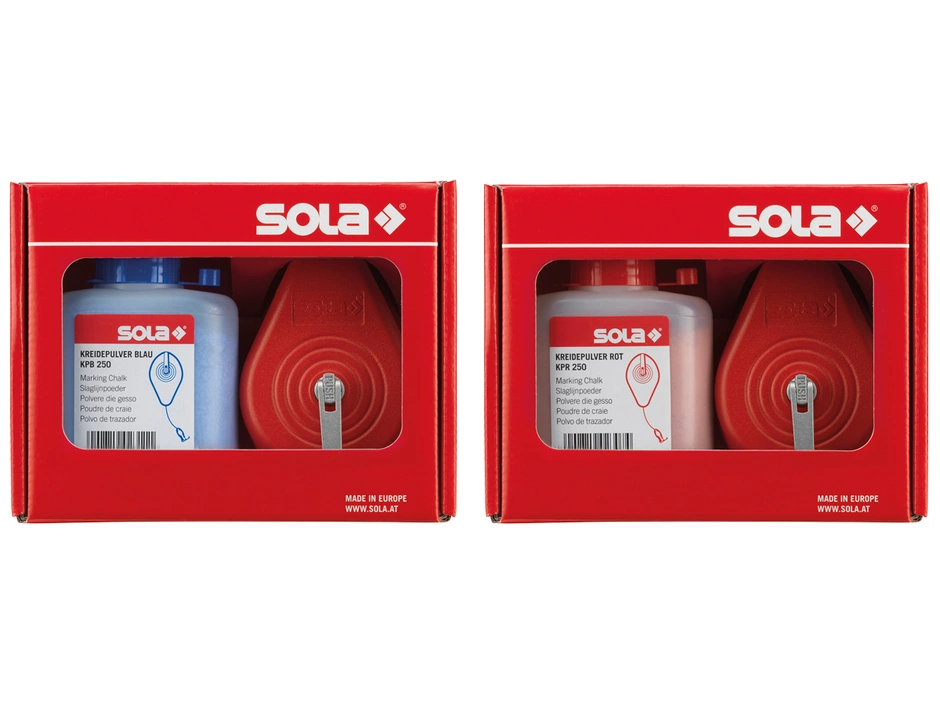 Markier-Set CLM SET mit SchlagschnurgerÀt CLM und rotem oder blauem Farbpulver. Markier-Set mit SchlagschnurgerÀt CLM aus leichtem, bruchfestem rotem Magnesium-Druckguss GehÀuse.
