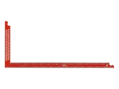 Zimmermannswinkel ZWCA aus elastischem, bruchfestem Stahl. Der Zimmermannswinkel hat eine rot beschichtete Oberfläche und Anreißlöcher mit 0,5 cm Durchmesser.