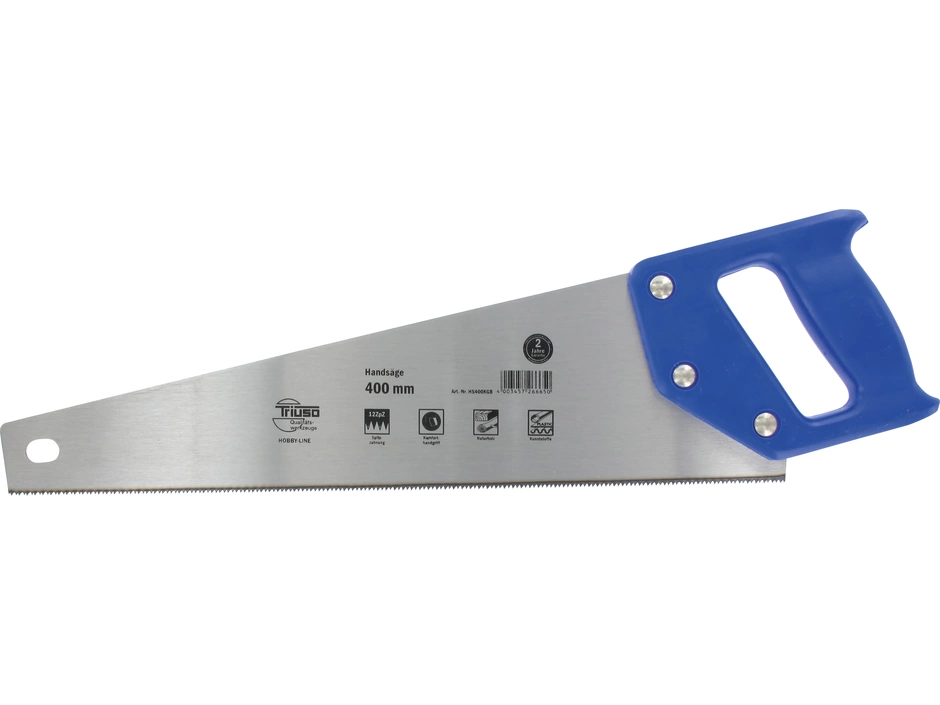 Handsäge Hobbyline mit Kunststoffgriff, vernickelte Nieten, induktiv gehärtete Zahnspitzen, für den universellen Gebrauch, wie z. B. Holz, Sperrholzplatten usw.