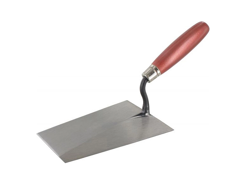 Maurerkelle geschmiedet, Schwanenhals, gehĂ€rtet, konisch geschliffen, flexibel, poliert, Holzgriff glatt und oberflĂ€chengeschĂŒtzt, vergĂŒtete Zwingenkappe