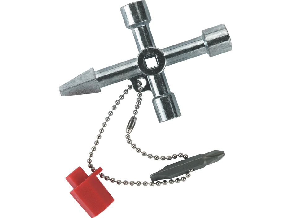 Profischlüssel, ideal für Heizung (z. B. Heizkörper-Entlüftungsventile), Klima, Lüftung und im Neubaubereich, aus Zinkdruckguss, Kette, Adapter für 1/4″ Bits