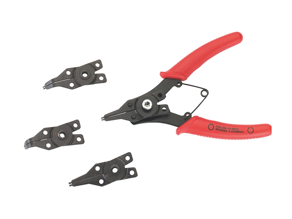 Uni-Sicherungszangenset mit 4 Spitzen für Innen- und Außenringe, 1x 45° und 1x 90° gebogen, 2x gerade